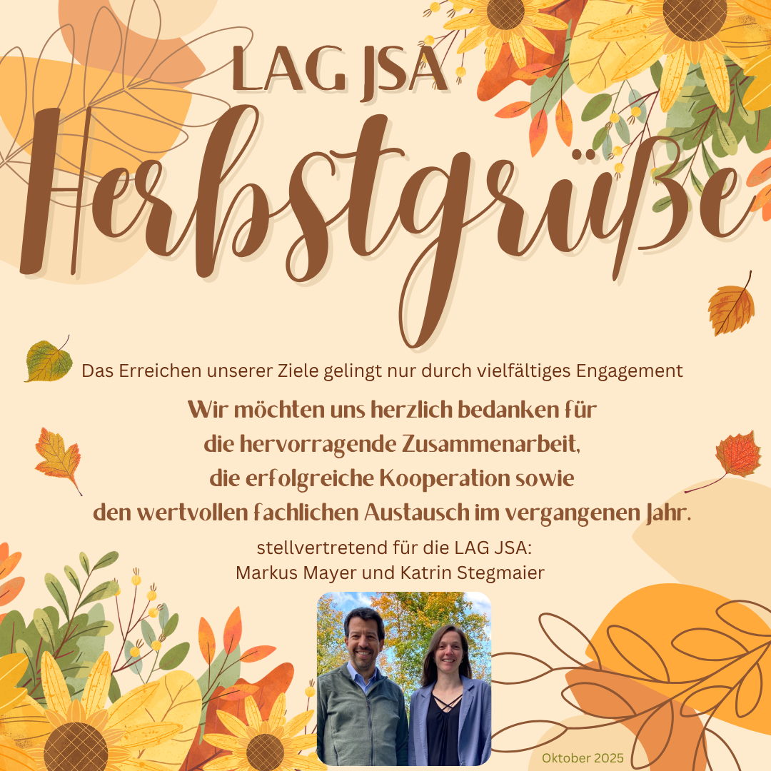 Als Zeichen der Wertschätzung, Verbundenheit und Dankbarkeit verschickt die LAG JSA auch in diesem Jahr wieder ihre Herbstgrüße.